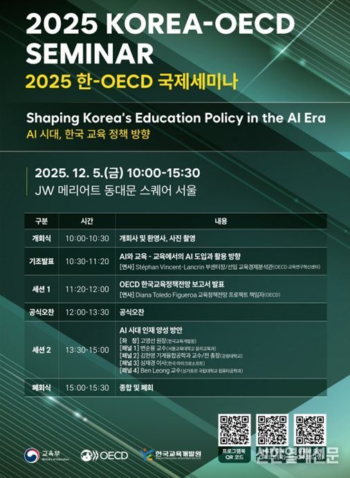 최교진 교육부 장관은 “인공지능(AI) 시대의 도래는 우리 교육에 혁신적인 전환을 요구하고 있다.”라고 말하며, “이번 토론회(세미나)를 통해 경제협력개발기구(OECD)와 함께 한국의 인공지능(AI) 교육 정책을 더욱 발전시키고, 모든 학생의 성장을 지원하는 미래교육 체제를 구축해 나가겠다.”라고 밝혔다.