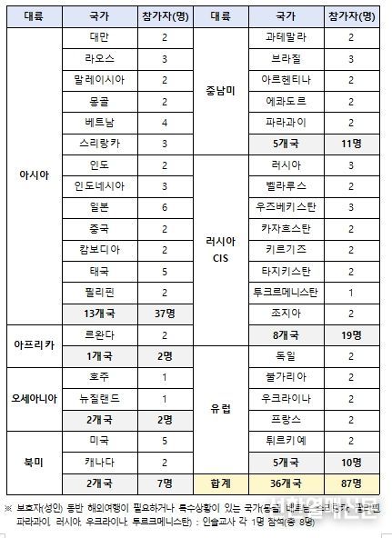 ‘해외 청소년 한국어교육 연수’는 각국의 정규 학교에서 한국어를 배우는 학생들이 한국에 대한 이해를 넓히고 한국어 학습 동기를 고취할 수 있도록 2019년부터 매년 운영되는 과정이다. 올해는 르완다·벨라루스·튀르키예 등 처음 참여하는 국가들을 포함해 총 36개국에서 인솔교사 포함 95명이 참석했다.
